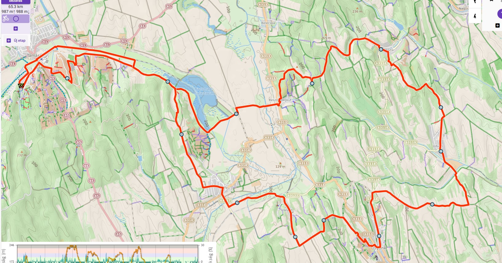A túra érinti a következő településeket: Tamási – Keszőhidegkút – Miszla – Udvari – Gyönk – Szárazd – Regöly – Tamási.